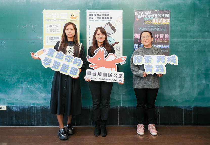 在教育部經費與資源的支持下,陽明交通大學成立了「學習規劃辦公室」,聘請三位具備教育或心理相關背景,熟悉校內各系所學習資源與就業方向的專職「學習規劃師」,引導學生依據興趣、專長與未來發展潛力進行自我探索。再加上由多元領域組成的導師群,同儕社群與學長姐經驗分享,形成完整的支持體系,成為學生在探索過程中的穩固依靠。