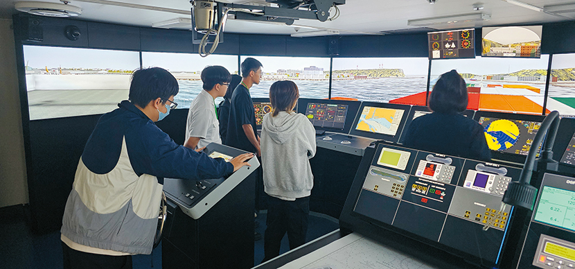 三、模擬駕駛艙:仿造「御風」製作的模擬開船機,同學們運用在觀測駕駛艙學到的開船技巧,親身感受「萬噸輪」轉向時的慣性延遲,解決可能面臨的海況危機與各種突發情形,一旦教學團隊規劃中的大三、大四以月計算的長時間實習計畫啟動,學生就不會懼怕要跟著航行船員一起輪值。