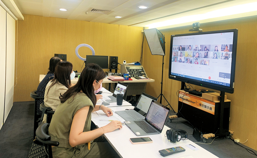 臺灣時間週二下午四點三十分,臺灣師範大學網路大學主任洪嘉馡在直播教室內準時上線,和來自世界各國的海外華語師資數位碩士在職專班學生、不分時差展開這學期最後一堂同步教學課程,同學們進行期末專題報告,討論熱烈。