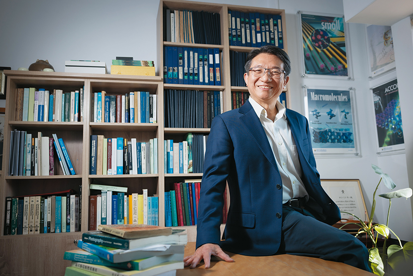 「高分子與超分子,好比蓋房子的『磚頭』。我的工作就是透過操控分子間自然存在的力量,如凡德瓦爾力、氫鍵、離子鍵等,引導這些『分子磚頭』自動排列成我想要的形狀。」何榮銘生動描述他蓋房子所使用的技法—導向自組裝(Directed Self-Assembly, DSA)並稱其為「利用上帝之手」,因為分子會自行組裝成預設結構,甚至排列出極微小的圖案。